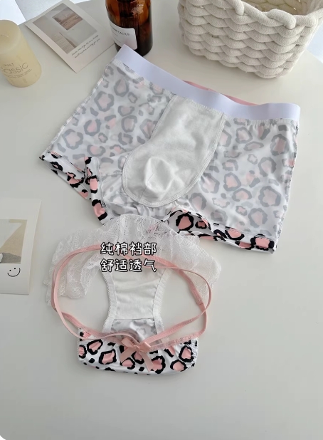 【情侣款】性感蕾丝豹纹情侣内裤一男一女纯欲风系带低腰三角裤