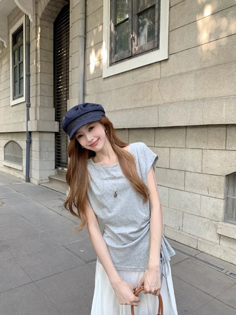 黄色温柔风设计感小众系带短袖T恤女春季小个子气质修身显瘦上衣