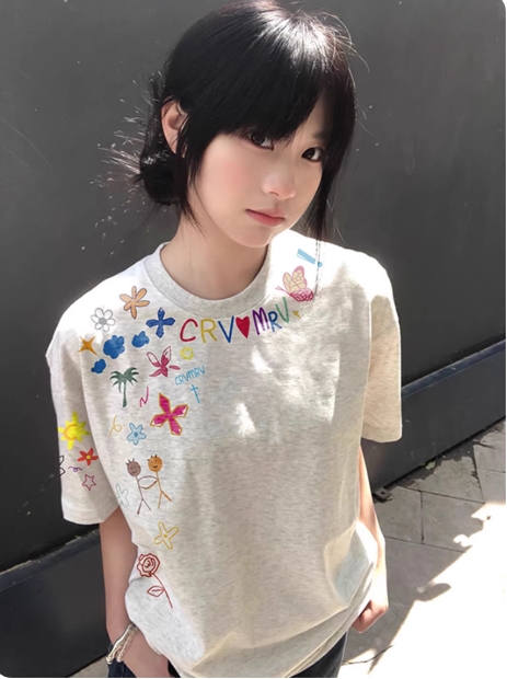 美式高街多巴胺字母短袖t恤女夏季宽松设计感小众初中生纯棉上衣