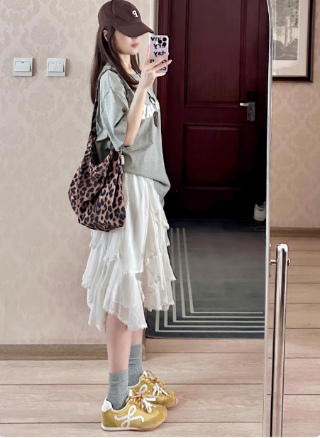 米白色五分半身裙女夏季2026新款不规则垂感飘逸蕾丝边蛋糕中短裙