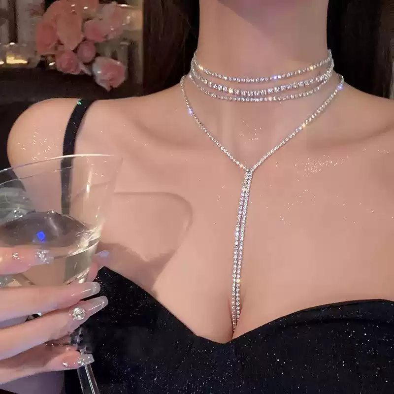 晚宴项链流苏多层叠戴胸链身体链性感颈链饰品轻奢小众礼服锁骨链