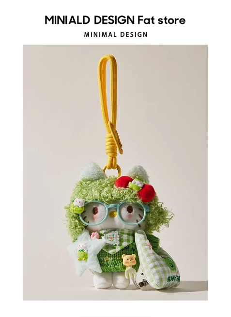 正版授权hellokitty包包挂件包挂饰新款绿色毛绒玩偶闺蜜礼物kt猫