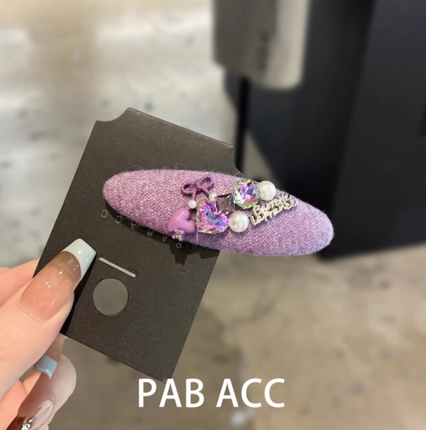 韩国高品质小清新香芋紫格纹闪亮锆石蝴蝶结字母BB对夹懒人掰掰夹