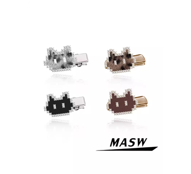 MASW麻秀原创设计甜酷创意像素猫咪边夹发饰甜美少女刘海小夹子新