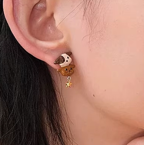 小狗系列小狗叠叠耳钉小众设计珐琅可爱趣味个性耳饰甜美耳环耳钉
