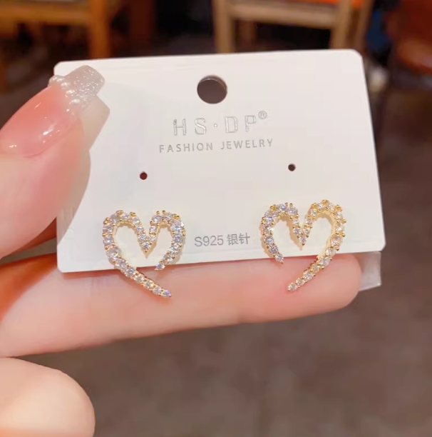 Rungeの「心心相印」s925银针小众时尚设计感微镶锆石爱心耳钉女
