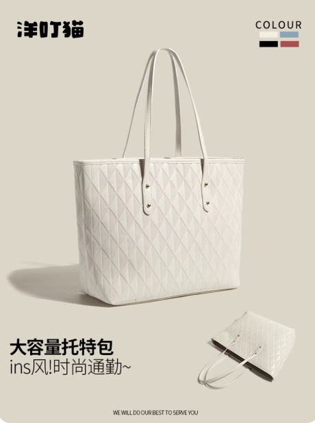 洋叮猫原创格纹托特包女2026新款夏大学生上课通勤大容量单肩大包