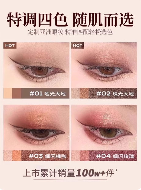 眼影棒三色一体女哑光珠光高光手残党初学者日常淡妆不飞粉眼影笔