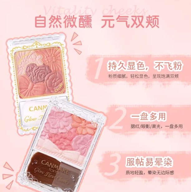 canmake井田花瓣腮红高光提亮膨胀色收缩色日本砍妹五色雕花腮红