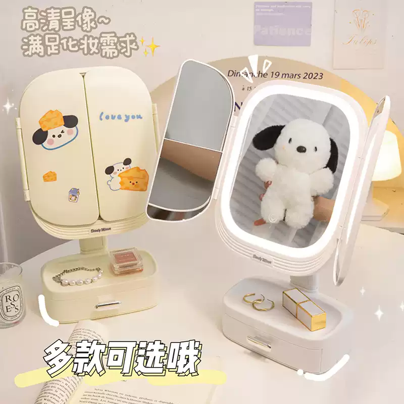 台式桌面化妆镜带灯女led梳妆台高级感折叠镜子生日新年礼物实用