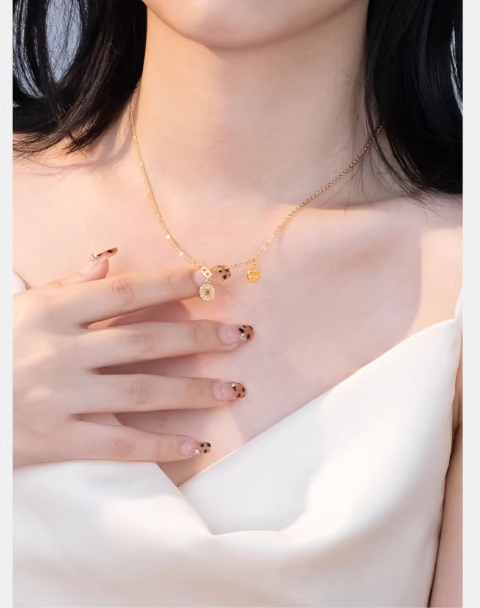 金世御 镀K金复古铜钱项链女素链高级感轻奢小众锆石吊坠锁骨链