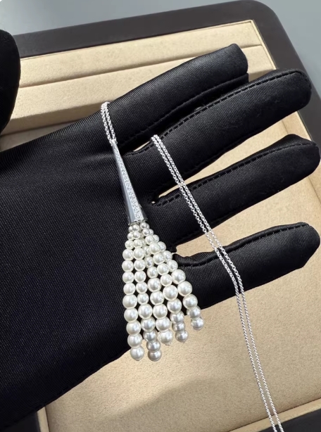 长款小扫帚流苏珍珠项链女法式轻奢小众设计高级感时髦气质毛衣链