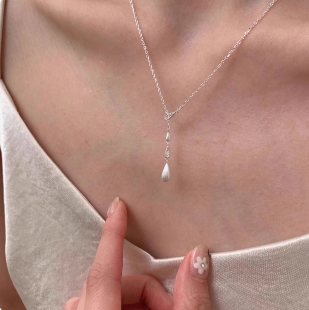 银色水滴项链女款2026新爆款颈链轻奢小众精致高级感简约风锁骨链