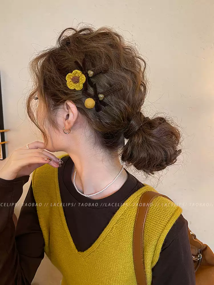 花朵毛球蝴蝶结发夹女前额刘海夹子头饰2026新款高端侧边夹发卡秋