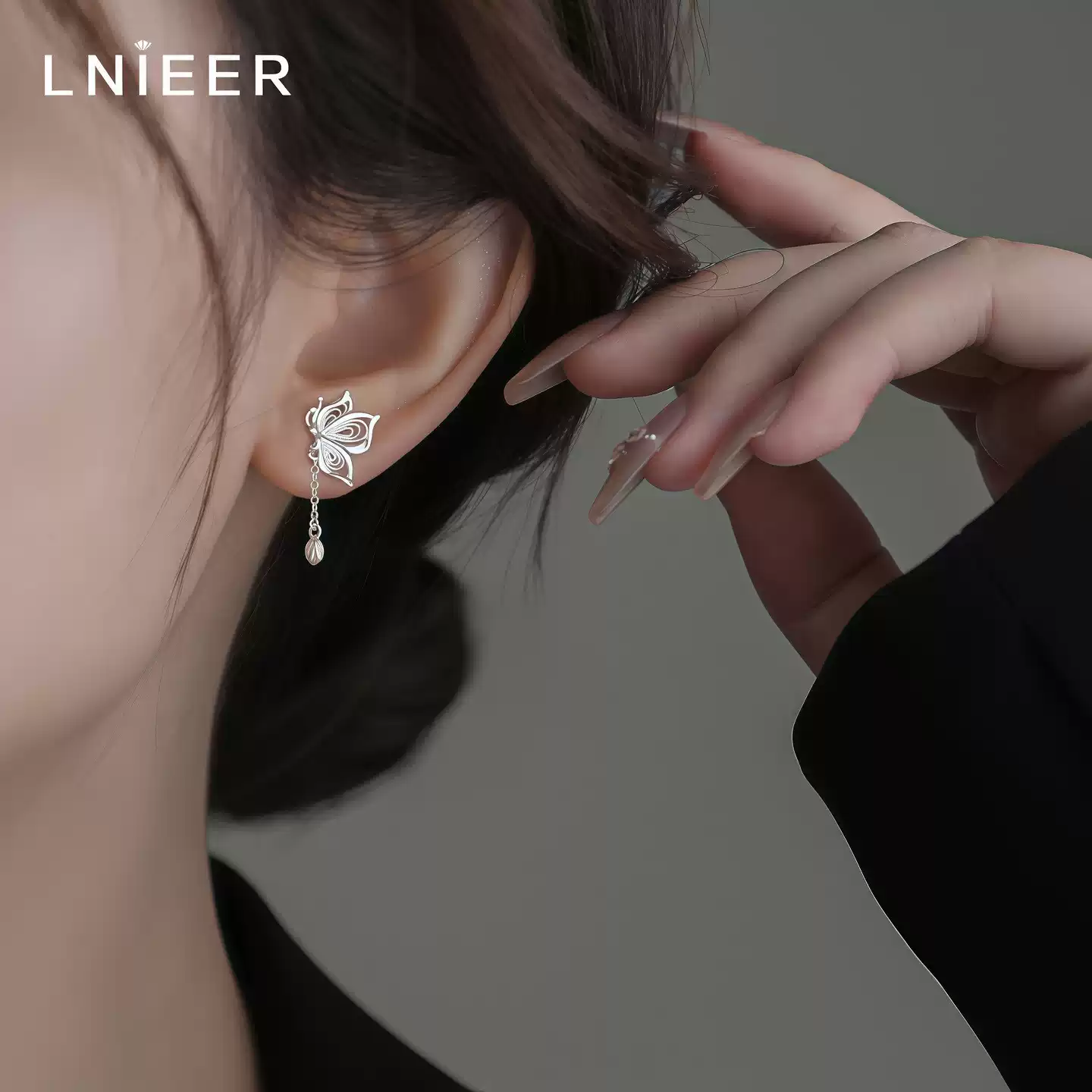 纯银流苏蝴蝶耳钉女2025新款爆款耳环轻奢小众设计新中式耳饰