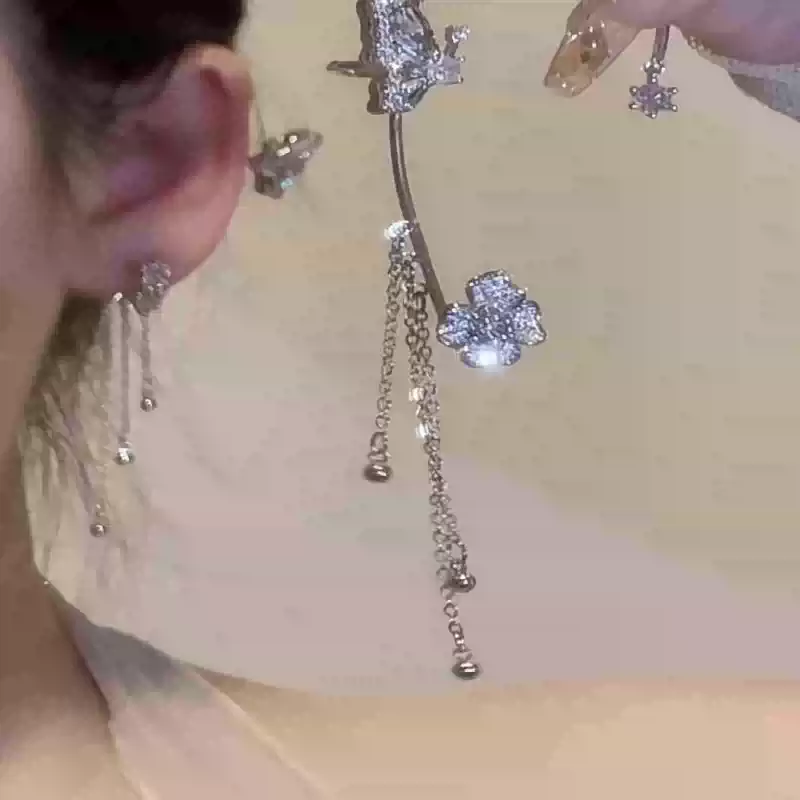 蝴蝶流苏锆石耳挂高级感小众设计轻奢耳骨夹仙气耳夹无耳洞耳饰女