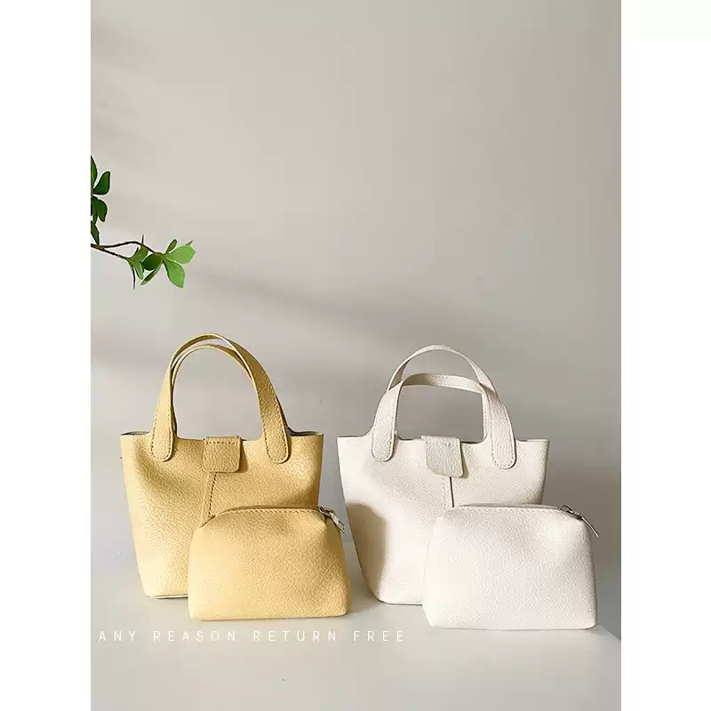 软皮手提小包2025夏新款潮ins休闲水桶包百搭单肩斜挎包