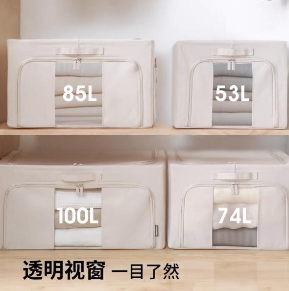 霜山带视窗布艺收纳箱可折叠可叠加带盖衣服整理箱棉被收纳储物箱