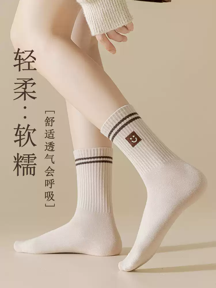 美拉德袜子女款吸汗透气运动舒适百搭2025秋冬新款中筒棉袜