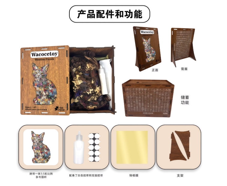 趣猫集拼图爱猫人士礼物异形猫咪拼图高难度超难烧脑木制puzzle