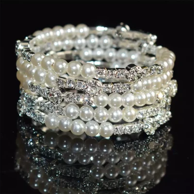 仿珍珠水钻超闪多层手链女新娘轻奢气质简约弹力手镯经典法式饰品