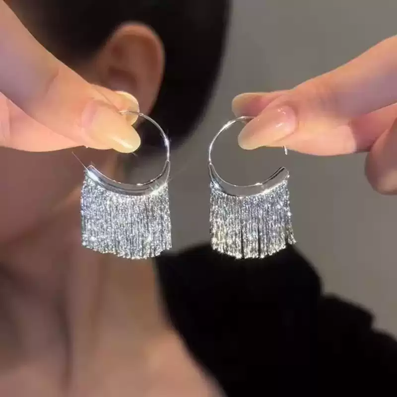 流苏长款s925纯银耳环女小众设计感耳坠气质轻奢高级感方圆脸耳饰