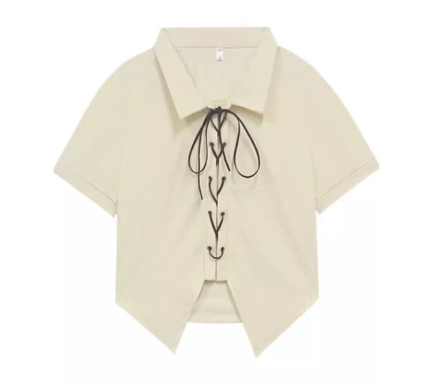 300斤大码女装胖mm显瘦正肩绑带新款设计感小众别致短袖上衣T恤女