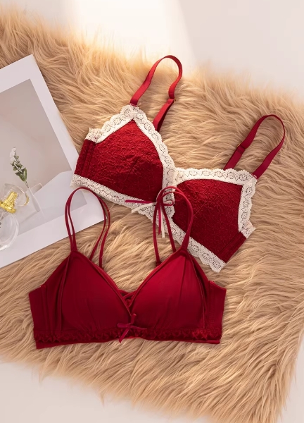 性感蕾丝本命年红色内衣结婚新娘小胸聚拢女士无钢圈无痕文胸套装