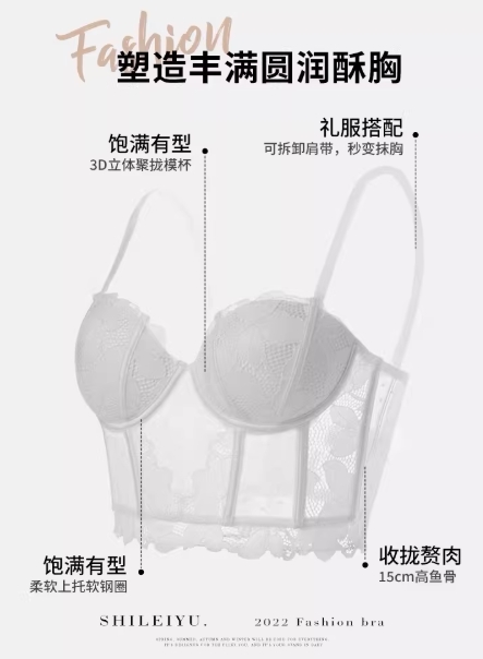 内衣聚拢收副乳防下垂大胸显小鱼骨塑形文胸春夏薄款蕾丝性感胸罩