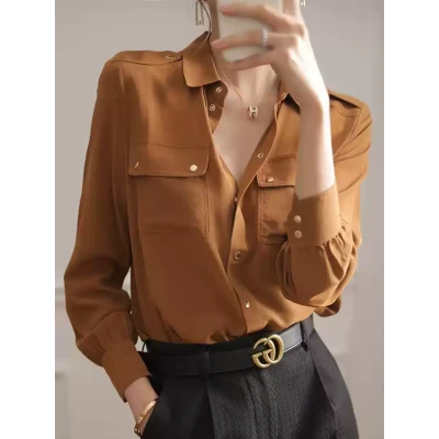 美拉德咖色女士衬衫女装秋冬2025新款高级感上衣加厚打底衬衣爆款