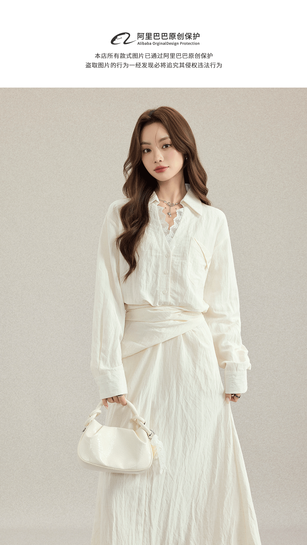 高妍知法式蕾丝花边长袖衬衫连衣裙女秋季新款巨好看的气质长裙子