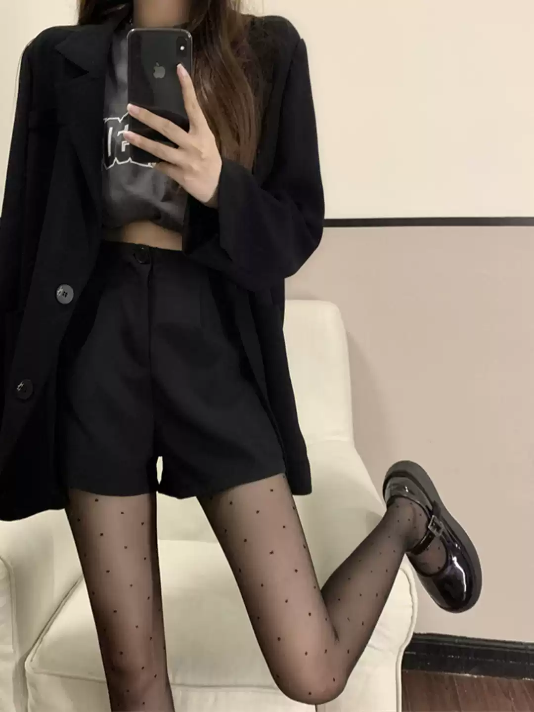 两双装黑色波点丝袜女薄款透肉防勾丝连裤打底袜ins性感圆点黑丝