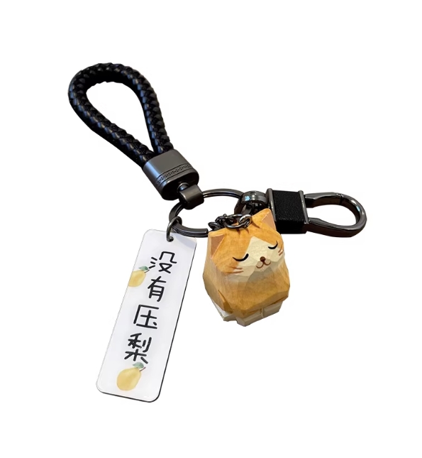 手工木雕可爱小猫咪钥匙扣创意情侣礼物柴犬小狗汽车包包精致挂件