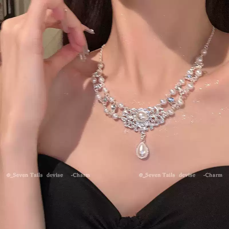 法式水滴珍珠项链女2025新款复古公主宫廷风锁骨链晚礼服镶钻颈链