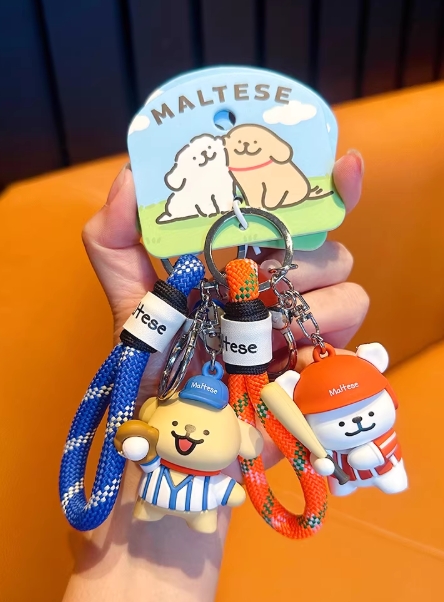 正版线条小狗运动会钥匙扣棒球羽毛球可爱卡通背包挂饰情侣钥匙链