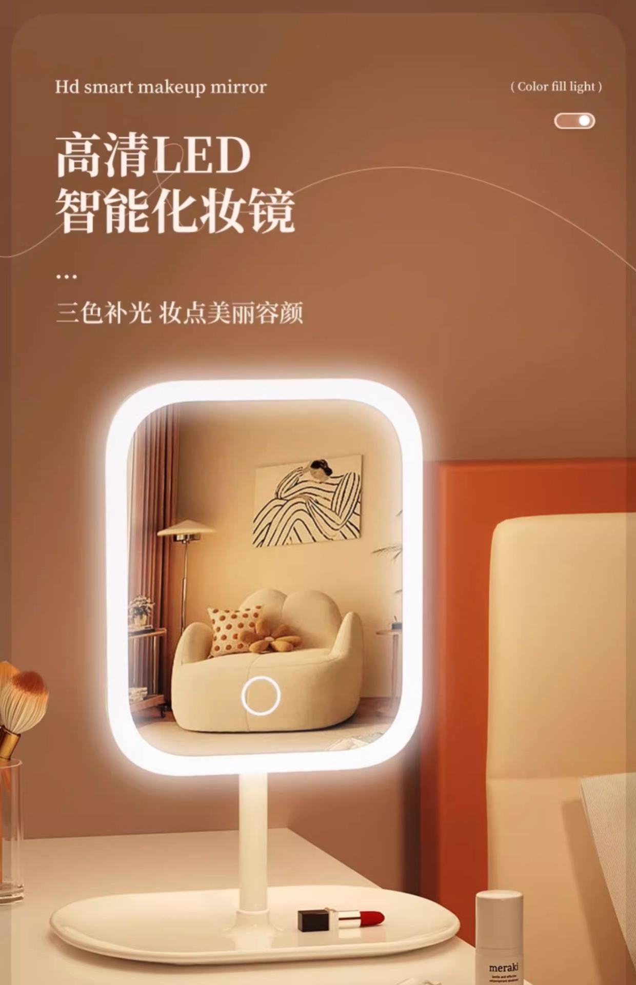 led智能化妆镜带灯女生卧室梳妆台梳妆镜学生宿舍桌面补光镜