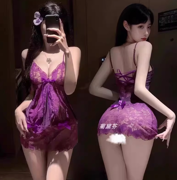 性感睡裙睡衣女2025年新款夏吊带纯欲蕾丝紫色薄款法式冰丝家居服