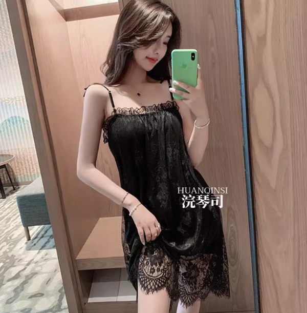 2025新款睡裙女春秋夏性感冰丝火辣薄款高级感纯欲风蕾丝吊带睡衣