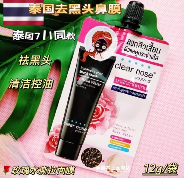 泰国711便携装clear nose黑头清洁撕拉面膜玫瑰水黑泥膜12g