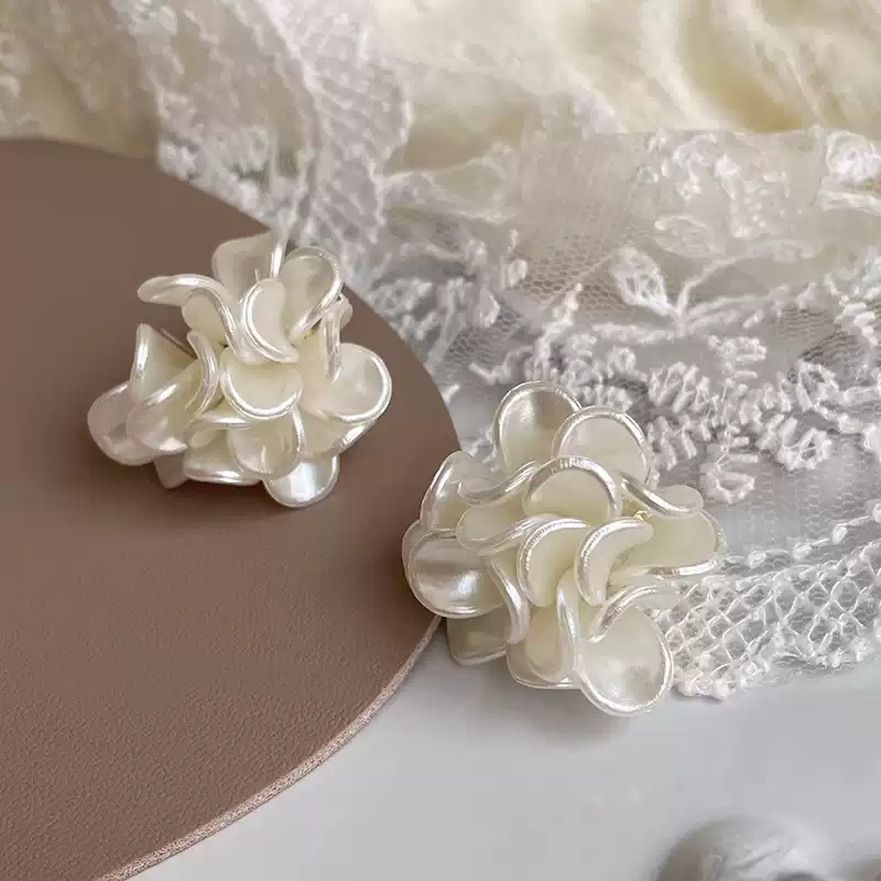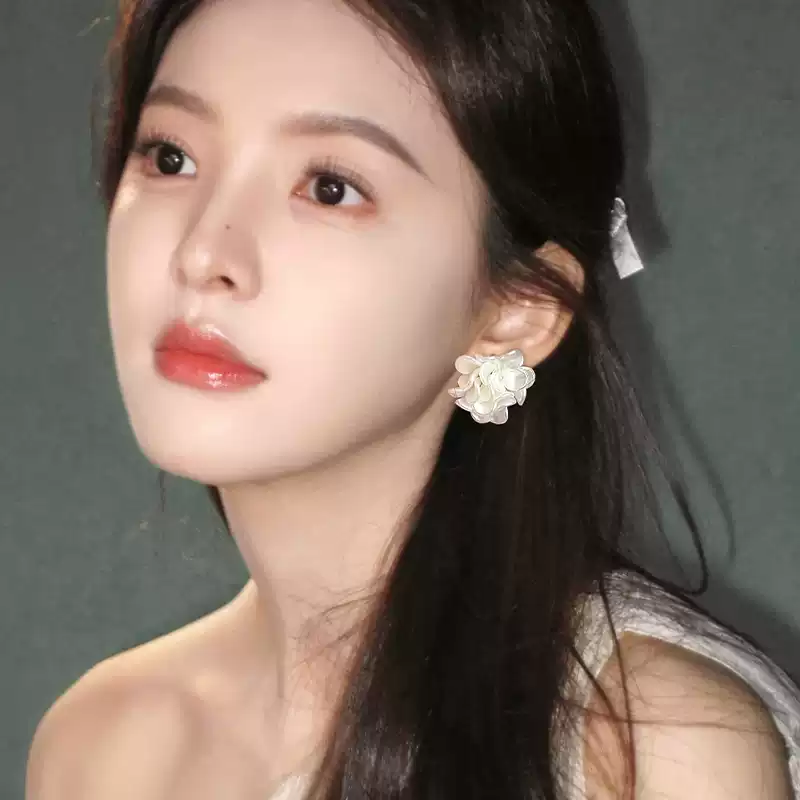白色山茶花耳环女纯银2025新款爆款高级感耳钉小众耳扣耳饰耳圈