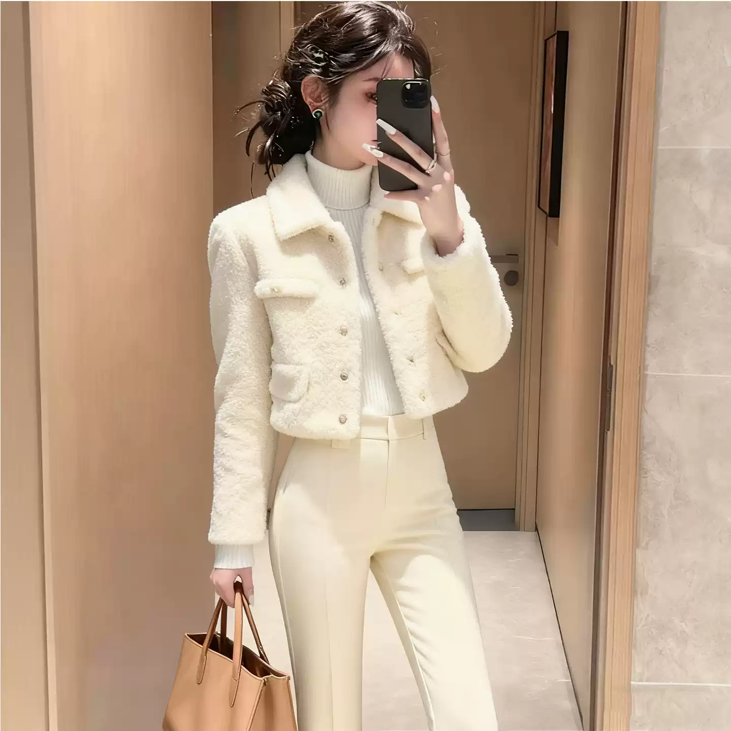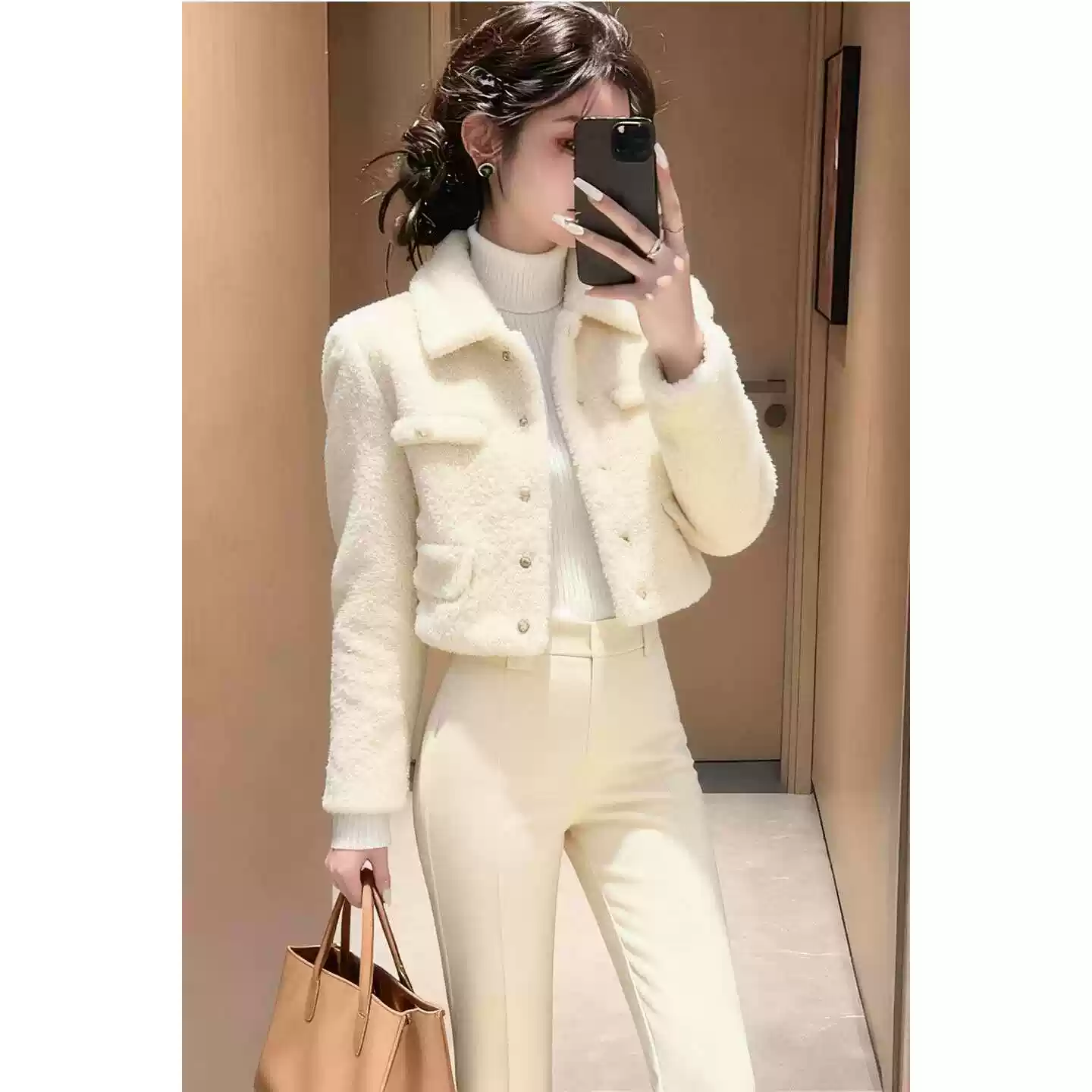 秋冬小香风白色短外套女千金风翻领小个子气质百搭上衣高级感