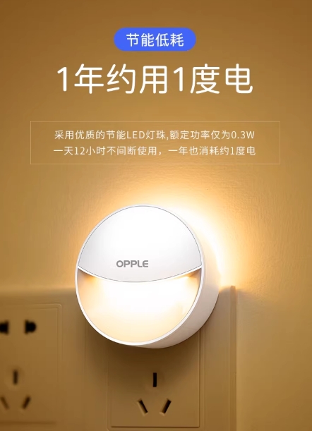 欧普人体感应灯小夜灯家用卧室床头睡眠灯插电款起夜过道厕所声控