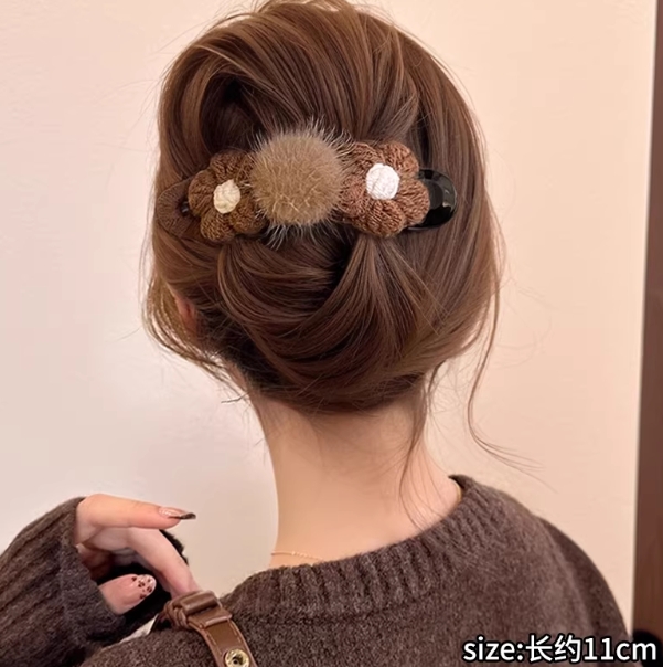 针织花朵鸭嘴夹女后脑勺半扎一字发夹子2025新款高级感鲨鱼夹大号