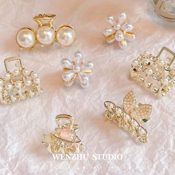 精致小号抓夹珍珠半扎发夹女前额碎发刘海夹子头饰新款侧边夹发卡
