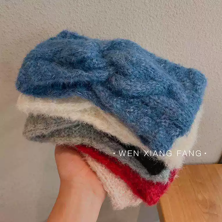 毛线发带女网红洗脸韩国秋冬潮网红头饰复古宽边针织发箍发卡