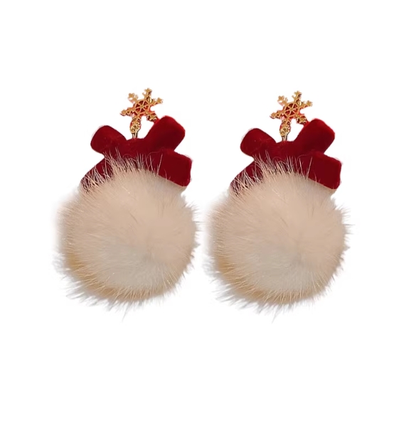 毛绒红色耳环2025新款爆款高级感秋冬蝴蝶结过年新年喜庆耳饰钉
