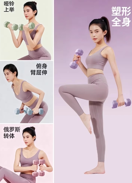 珈柔哑铃女士健身家用器材瑜伽壶铃杠铃青少年包胶小哑铃2KG一对