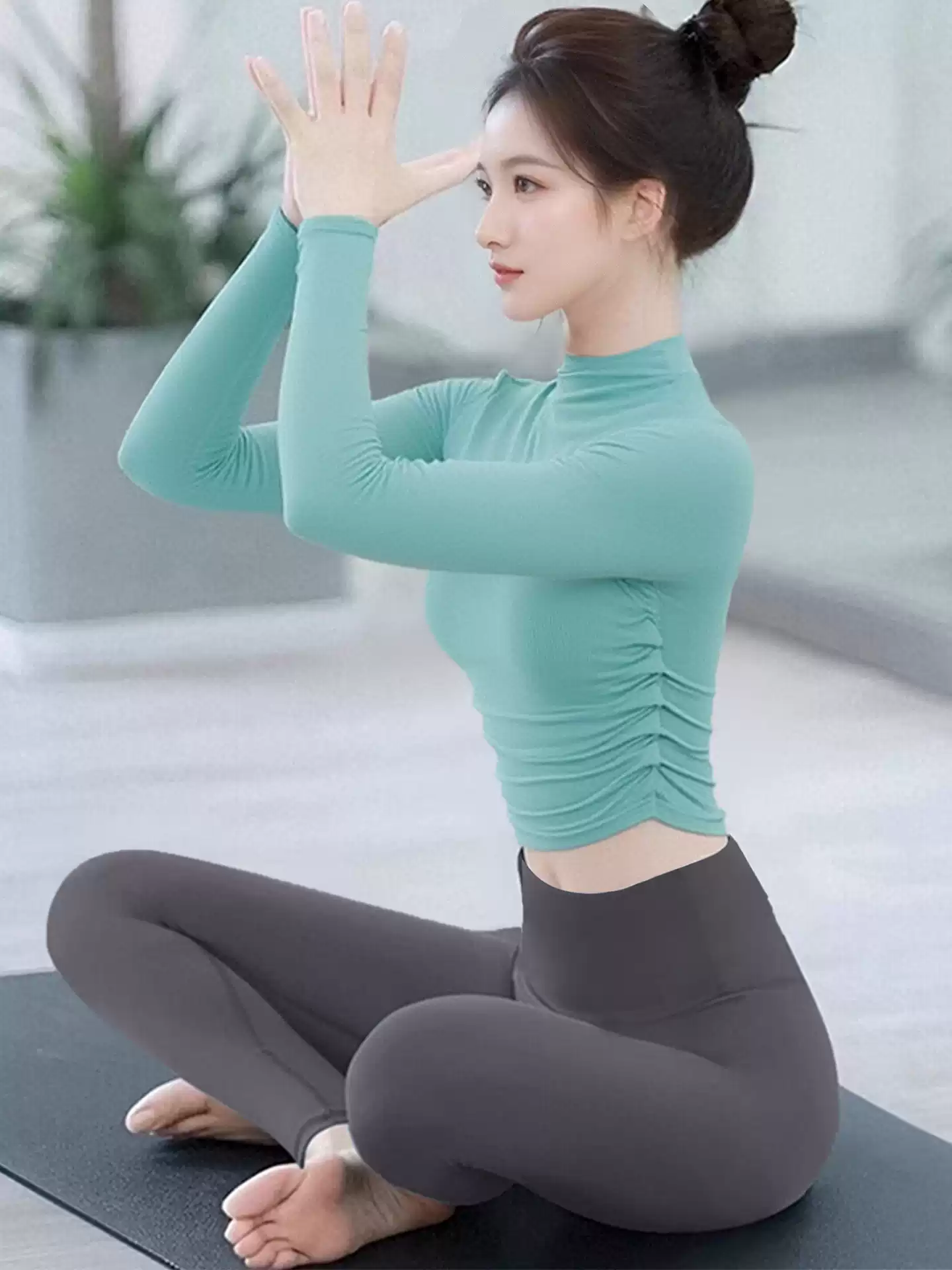 长袖瑜伽服女2025新款超好看高领显瘦普拉提运动上衣健身套装秋冬