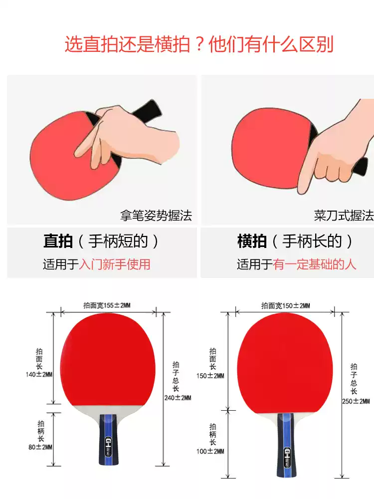 乒乓球拍2只装正品三星单双拍成品兵兵拍直拍横拍儿童套装学生