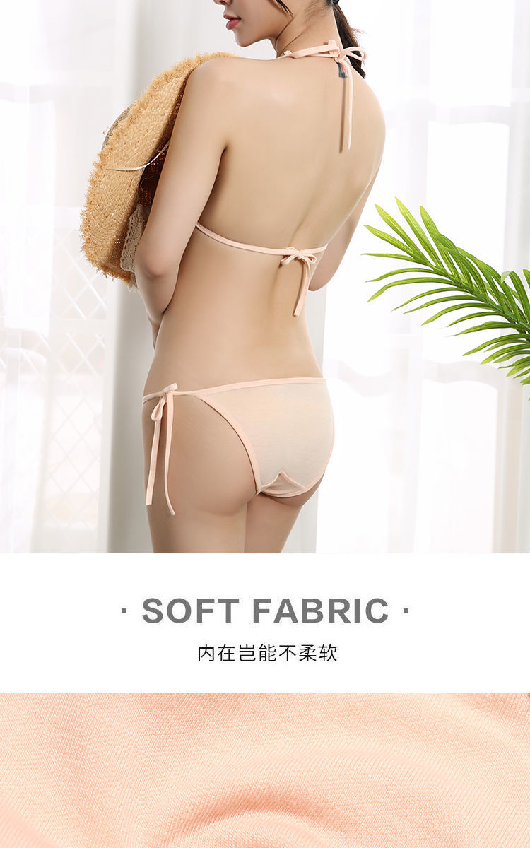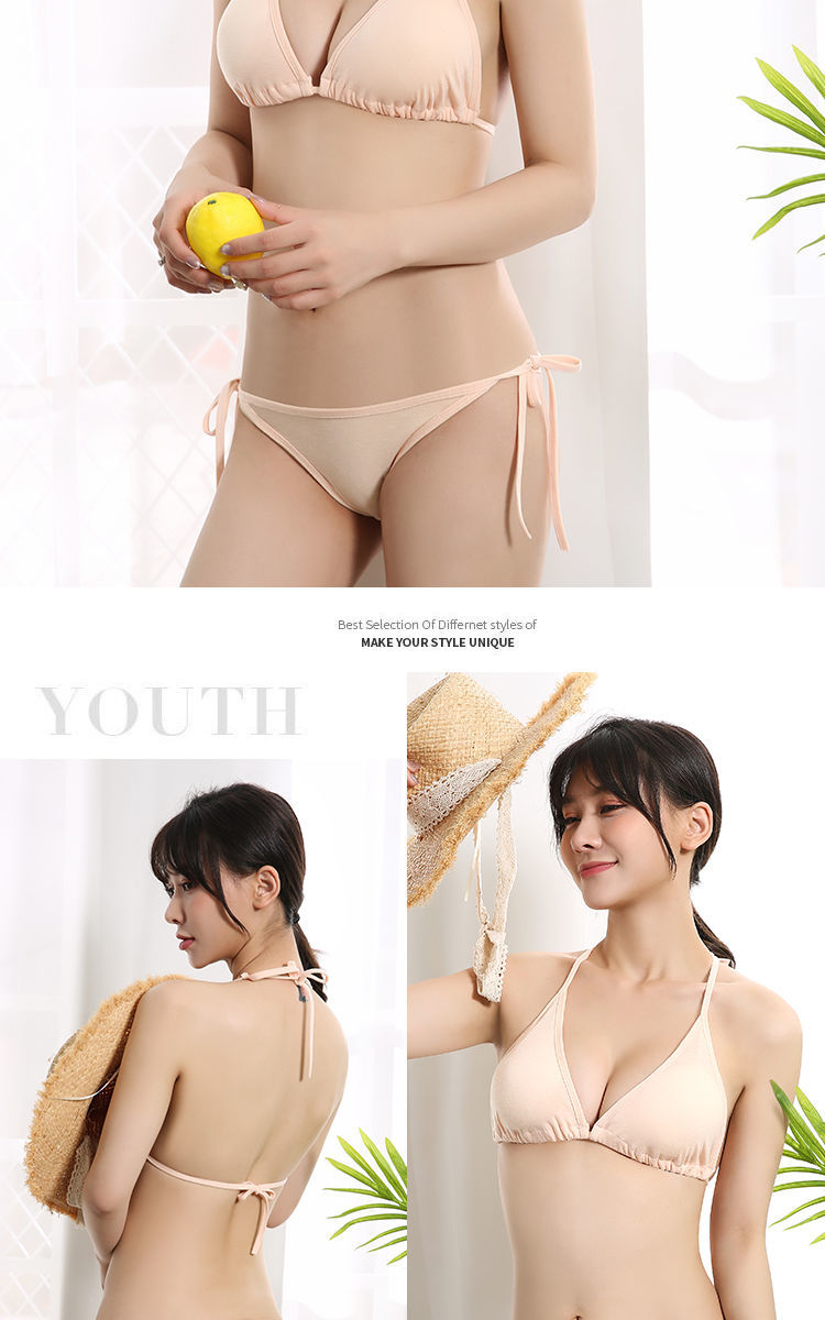 比基尼棉绑带美背内衣舒适挂脖文胸少女套装透气三角裤泳装潮